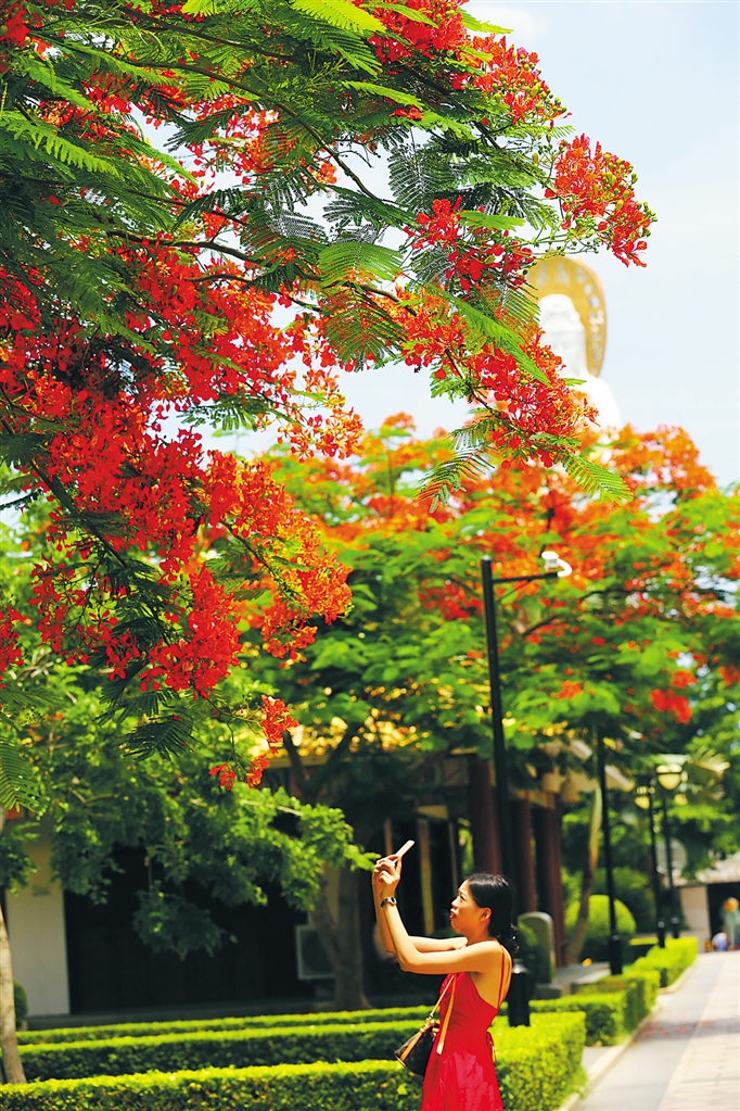 “日中乌鹊至,花里凤凰来”“深红莲子艳,细锦凤凰花”……凤凰花美,古往今来也引得不少文人墨客吟诵,留下不少绝美佳句,如今吸引着许多爱花惜花之人探路寻花。