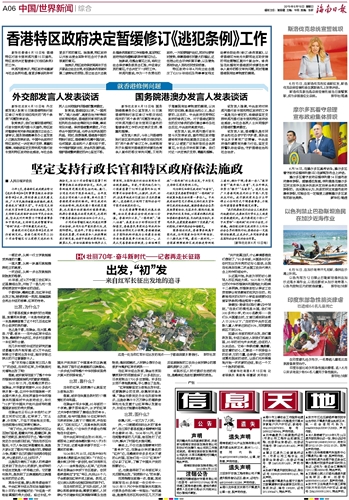 海南日报 中国/世界新闻综合 006 2019-06-161 2019年06月16日 星期日