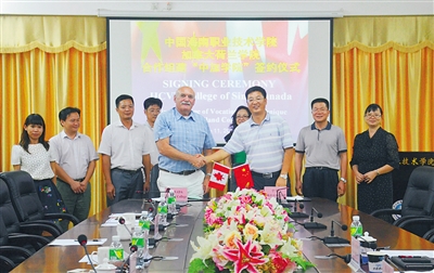 随着国际合作与交流日益频繁,社会急需掌握现代信息技术、具有国际能力和综合职业能力的高素质人才。学校先后与法国、美国、加拿大、韩国、新加坡、尼泊尔、柬埔寨、老挝等国家开展国际合作,签订了长期合作培养和文化交流协议,积极贡献力量为构建人类命运共同体搭建更宽阔的平台。学校与加拿大爱德华王子岛省荷兰学院合作成立中加学院,引进了能力本位教育人才培养模式、教学方法和课程体系。海职院积极探索面向“一带一路”沿线国家和地区培养技术技能人才职业教育国际合作模式,加快向孟加拉、柬埔寨、马来西亚、哈萨克斯坦等国家输出海南高职教育模式。2016年起,学校与尼泊尔全球酒店教育学院等15所尼泊尔院校共同探索构建职业教育实习模式,培养尼泊尔国际学生503名。2018年,又在尼泊尔甘达基省博卡拉市成立了海南职业技术学院尼泊尔分校,构建“2+1”实习教育模式,为尼泊尔社会经济发展培养和输送高素质技术技能型人才。学校成为海南省连续两年荣登全国高职院校“国际影响力50强”榜单的高职院校。