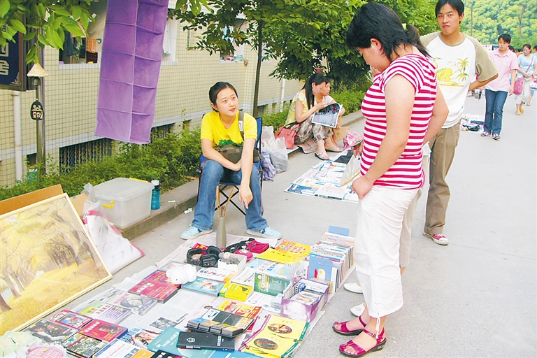 同为“80后”的银行职员胡蓉对毕业跳蚤市场也有很深刻的印象。她至今还留着当时自己摆摊的照片。“我是2006年从西南师范大学毕业的。临近毕业时,学生宿舍外的校道两旁特别热闹,到处是毕业生摆的地摊,书籍、磁带、二手衣服、生活用品、礼品摆件都有。自己当时也凑热闹摆了一个摊。”胡蓉说。