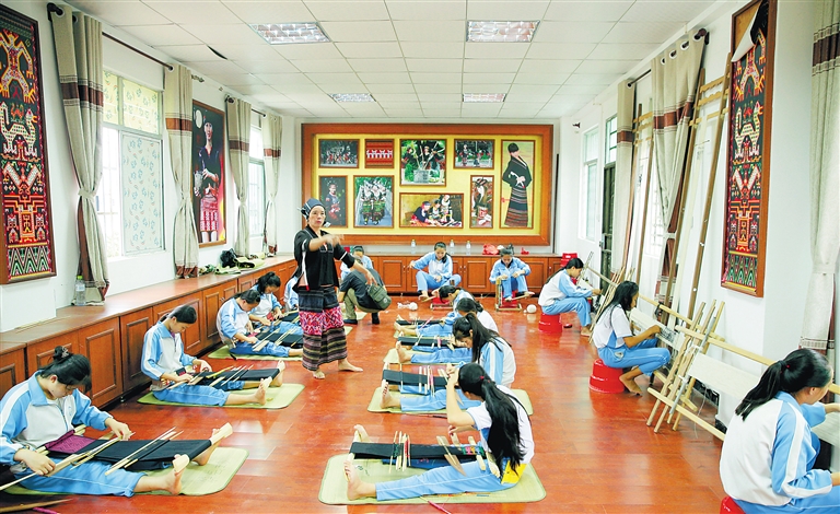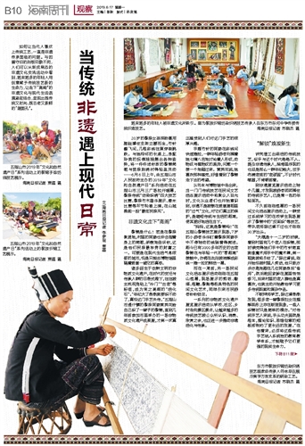 不断拜师学艺,陈达谞渐渐发现,很多老一辈黎族妇女在理解图形上存在断层现象,一些人织锦时只是简单的模仿。“对传统手艺人来说,手头功夫固然是根本,理论知识、思维创意的短板却制约了更长远的发展。”在他看来,必须将这些传统手艺纳入系统性的教育教学体系,才能赋予它们更强的现实生命力。