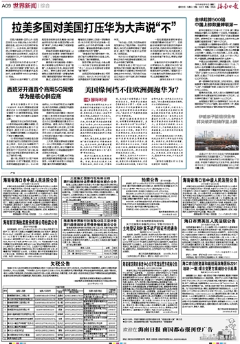 海南日报 世界新闻综合 009 2019-06-181 2019年06月18日 星期二