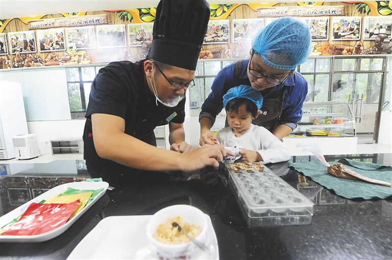 在3000多种热带植物组成的王国里,孩子们带着极大的求知欲,跟随着景区博士讲解员一起探寻美丽的“空中花园”、独特的“板根现象”等热带雨林奇观,听讲解员解析“天然食品香料之王”香草兰、“巧克力之母”可可等奇特的热带植物。手工巧克力DIY体验则让学生们的研学体验更加有趣:在体验馆中,巧克力体验师向孩子们讲述了可可的演变史,以及巧克力的加工、营养、品级等科学知识,在体验过程中,孩子们实现了学习与实践的完美结合……“奇妙的热带雨林”“有趣的昆虫世界”“可可文化与巧克力制作”“叶子的秘密”“精油提取知识科普”等一系列集知识性与体验性相结合的主题科普研学产品课程受到了广大中小学生的欢迎。