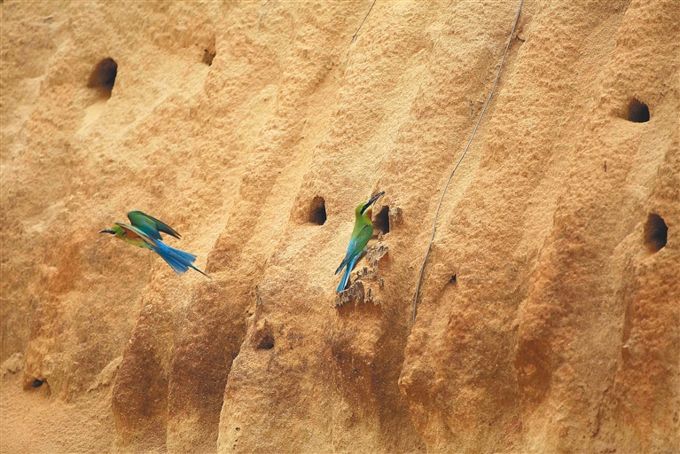 近年来,海口市推动五源河国家湿地公园设施建设和生态修复,越来越多的蜂虎鸟来此筑巢产卵。