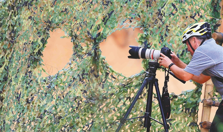 观鸟平台与周边环境融为一体,不打扰鸟类栖息,也方便爱好者观鸟。 本报记者 陈元才 摄