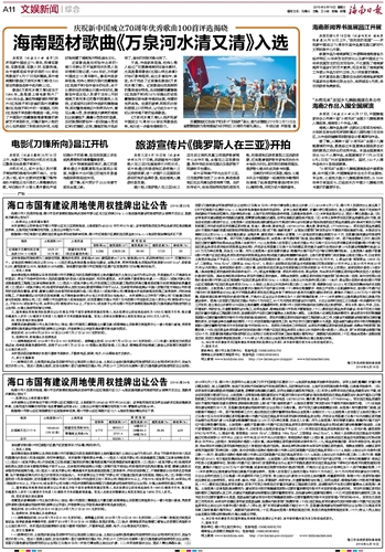 海南日报 文娱新闻综合 011 2019-06-191 2019年06月19日 星期三