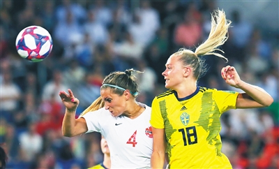 下半时开始不久,加拿大获得一次任意球机会,形成她们全场第一次射门。第55分钟,瑞典队中场断球成功,阿斯拉尼传至禁区,布拉克斯特纽斯跟上打门球进,瑞典队1:0领先。此后两队都加快了进攻节奏,加拿大不再沉迷于控球。