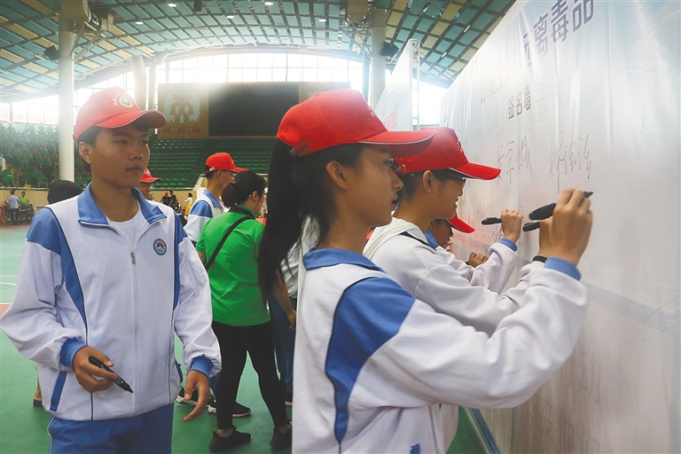 “让我们一起向毒品坚决说不!共同打造美好家园。”6月23日上午,昌江举办“健康海南·国庆70年”2019国际禁毒日全民禁毒“万人彩妆徒步”主题活动,参与活动的各界群众和学生反响强烈,纷纷喊出禁毒心声。