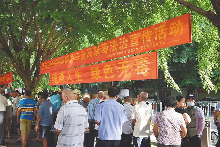 千里之堤,溃于蚁穴。禁毒除了要控制吸毒人群数量、防止复吸,还要严控新吸毒人群的滋生。禁毒三年大会战以来,昌江县禁毒委各成员单位树立“一盘棋”观念,将禁毒与扫黑除恶、精准扶贫相结合,先后开展了“流动课堂”“全民禁毒宣传月”“6·26”国际禁毒日系列活动、禁毒三年大会战文艺宣传巡回演出等禁毒宣传活动,通过“禁毒部门点上造势、成员单位线上联动、基层社区面上呼应”的“点线面”结合的宣传格局和形式多样、内容丰富的宣传教育活动,掀起了全民参与禁毒的宣传高潮,营造了浓厚的禁毒宣传氛围。