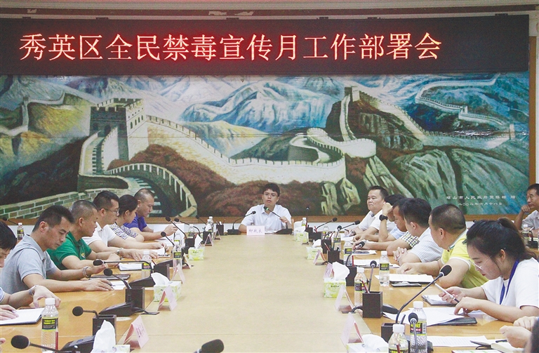 根据省、市禁毒部门的部署要求,秀英区禁毒委制定下发了《秀英区2019年禁毒春雷行动方案》,明确了行动目标,细化分解了工作任务,落实“八严”工程责任单位的责任。3月2日,在全区禁毒工作部署会上,区委常委、副区长吴腾越听取各镇(街)及“八严”工程牵头单位“春雷行动”进展汇报,强调要深入推动“春雷行动”,确保按时完成目标任务,层层压实禁毒工作责任。
