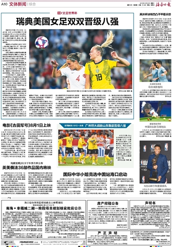 海南日报 文体新闻综合 010 2019-06-261 2019年06月26日 星期三