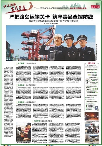 | 海南日报 2019年“6·26”国际禁毒日系列特刊·省公安厅港航公安局 015 2019-06-261 2019年06月26日 星期三 |