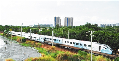 海口市郊列车运行最高速为160公里/小时,车辆兼具高速动车组和城轨地铁技术优势,速度快、载客量大,能实现快起快停和快速乘降,适应客流量激增的高峰期、交通繁忙区域“快速、大运量、密集停站”的公交化运营需求。