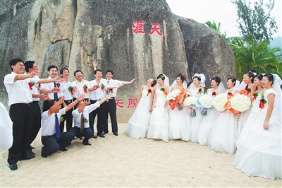 按照“创办品牌活动、提升旅游知名度”这个思路,1996年底,我们又举办了首届天涯海角国际婚庆节,吸引了国内外50多对新人参加。天涯海角国际婚庆节为三亚后来发展婚庆旅游产业奠定了基础。