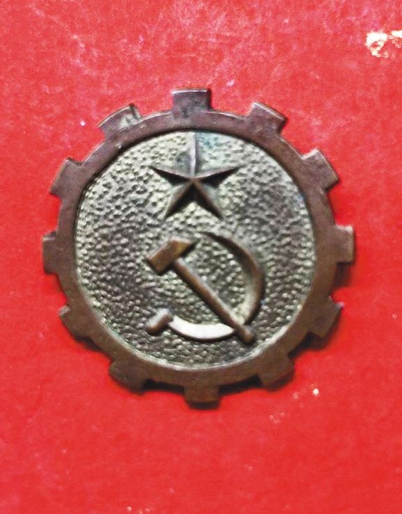 蔡於良收藏了一枚很特别的布质纪念章,这枚纪念章是中华苏维埃共和国第一次全国苏维埃代表大会证章,以红绸布加工而成,正面为泛黄五角星图案,其上中央是“代表证”三字,上有弧形排列、从左至右“中华工农兵苏维埃第一次全国代表大会”十七个红色繁体字。