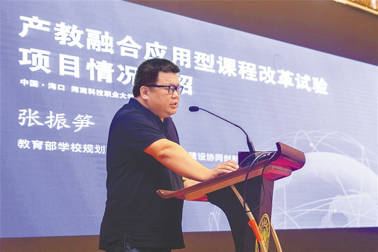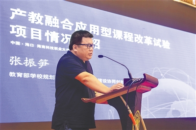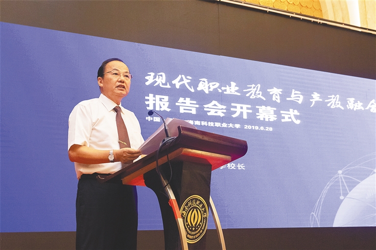 2019年6月28日下午,由海南省教育厅主办,海南科技职业大学承办的“现代职业教育与产教融合”专题报告会在海口举行。在报告会前,还举行了海南科技职业大学立项为教育部学校规划建设发展中心“产教融合应用型课程改革实验学校”的揭牌仪式。