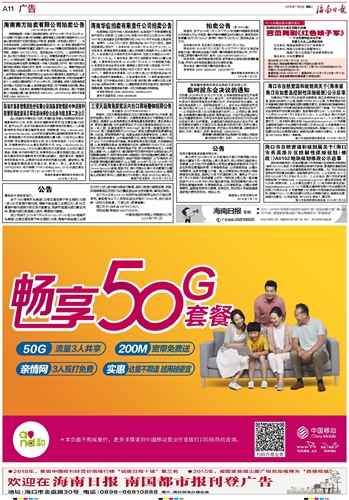 海南日报 广告 011 2019-07-021 2019年07月02日 星期二