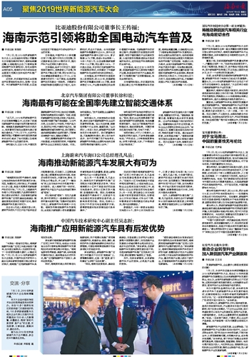海南日报 聚焦2019世界新能源汽车大会 005 2019-07-031 2019年07月03日 星期三