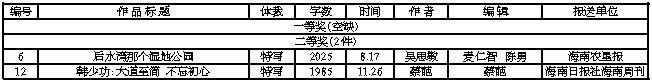 第二十九届海南新闻奖获奖作品目录(报纸副刊)