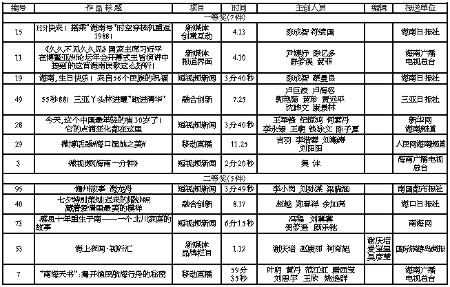 第二十九届海南新闻奖获奖作品目录(新闻访谈、节目编排、现场直播)