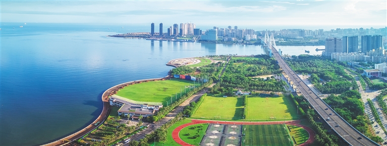 据了解,海口湾畅通工程项目岸线全长约19.6公里,将在海口湾至海甸溪南北两岸,建设滨海滨江漫步道、跑步道、骑行道三线全线贯通工程,提升景观环境,增设服务设施,全面提升滨水城市品质。该项目计划今年10月1日前完成示范段的“三道”贯通,12月31日完成示范段景观建设。本报记者 袁琛 摄