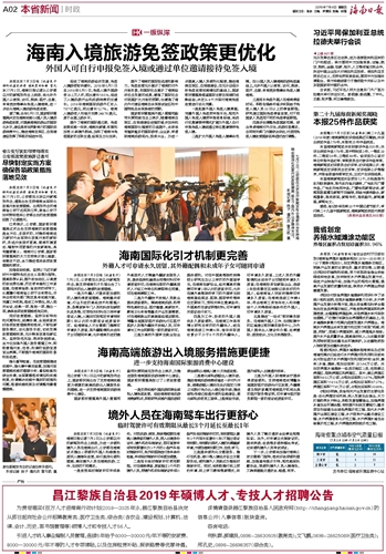 海南日报 本省新闻时政 002 2019-07-041 2019年07月04日 星期四