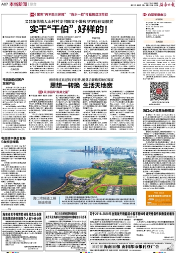 海南日报 本省新闻综合 007 2019-07-041 2019年07月04日 星期四