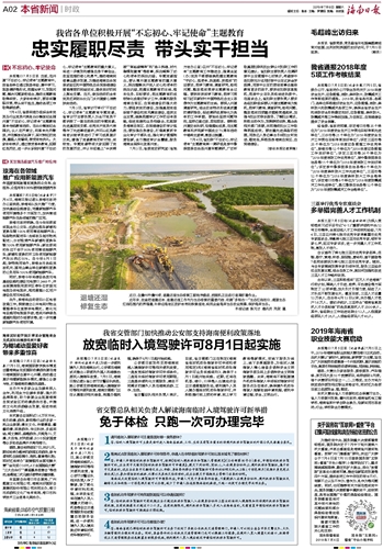 海南日报 本省新闻时政 002 2019-07-061 2019年07月06日 星期六