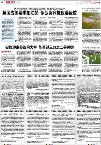 海南日报 世界新闻综合 007 2019-07-061 2019年07月06日 星期六