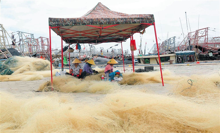 近日,临高县调楼镇各个渔港停满了渔船,虽是休渔期,但是渔民仍然忙碌着,他们补网、修船、保养渔具……做好各种准备工作,以迎接捕捞季节的到来。