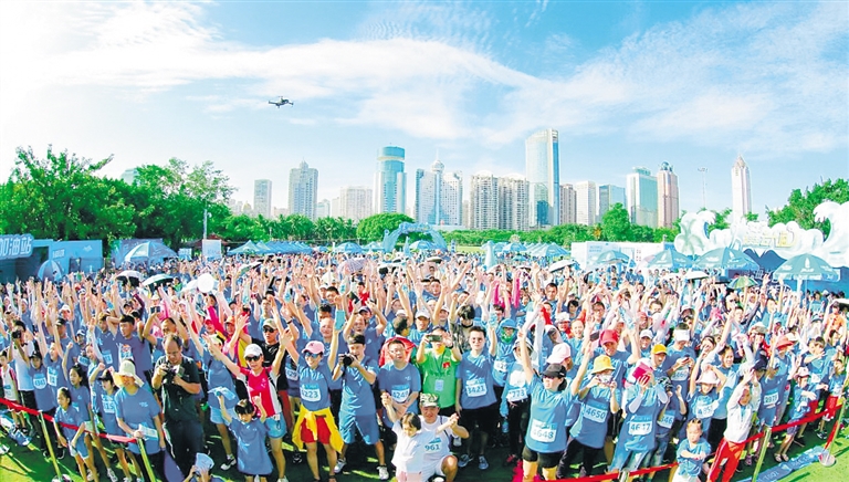 2019年海口市全民健身月活动暨“清爽走去大海”健步走比赛近日在海口市万绿园举行,约2500人参加。
