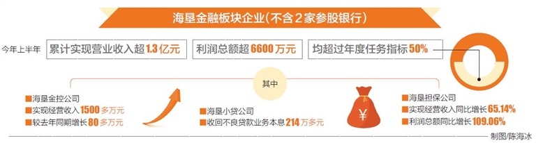 此外,其余几家金融板块企业,在今年上半年的表现都各有亮点:海垦金控公司实现经营收入1500多万元,较去年同期增长80多万元;海垦小贷公司不良贷款催收工作成效显著,收回不良贷款业务本息214万多元;海垦担保公司凭借大幅增长的业务量,实现经营收入同比增长65.14%,利润总额同比增长109.06%。