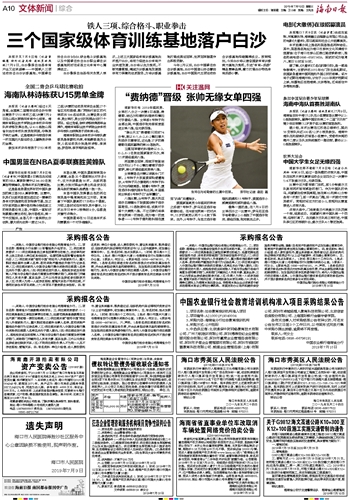 海南日报报业集团旗下媒体: 海南日报 |南国都市报 |南海网 |南岛晚报 |证券导报 |法制时报 |海南农垦报 设为首页
