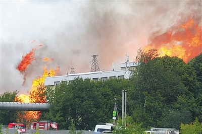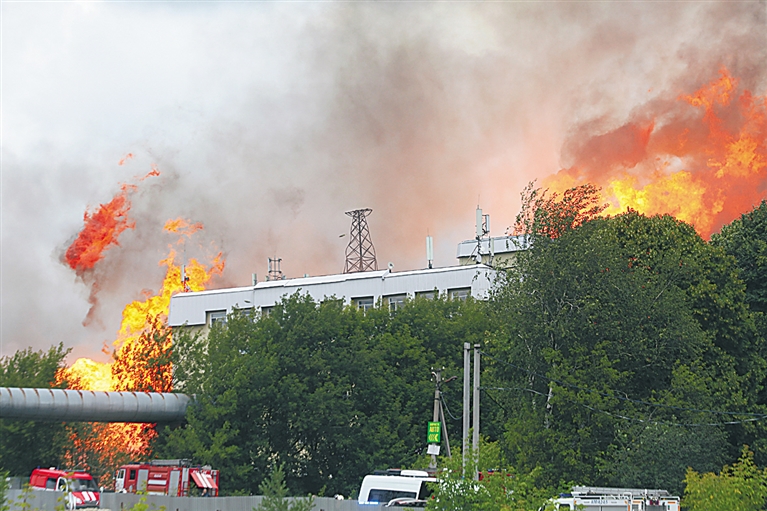 当日,俄罗斯莫斯科附近的梅季希一家电厂发生大火,事故已致8人受伤。新华社/美联