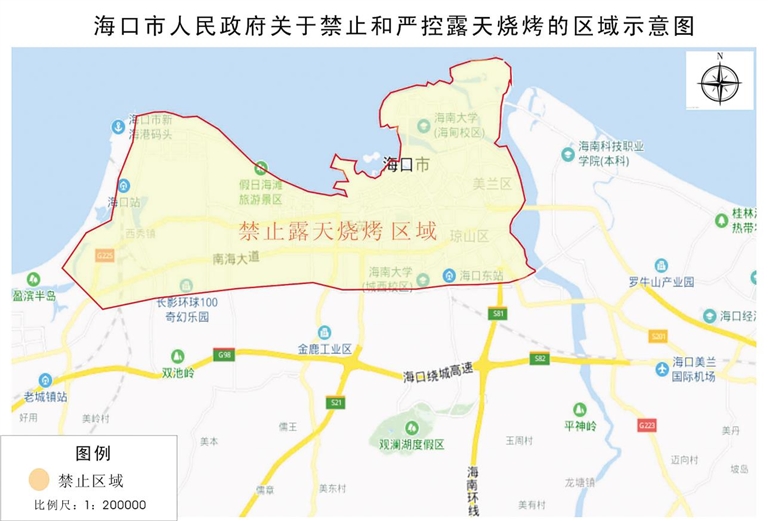 一、海口市建成区内禁止露天烧烤的具体区域:东至南渡江西岸、南至椰海大道北侧、西至粤海大道东侧、北至沿海边界。