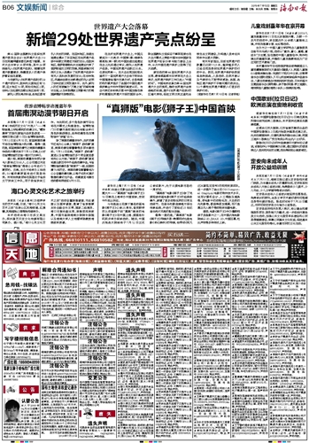 海南日报 文娱新闻综合 014 2019-07-121 2019年07月12日 星期五