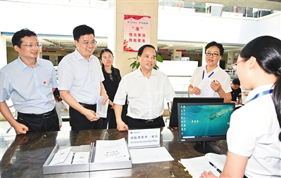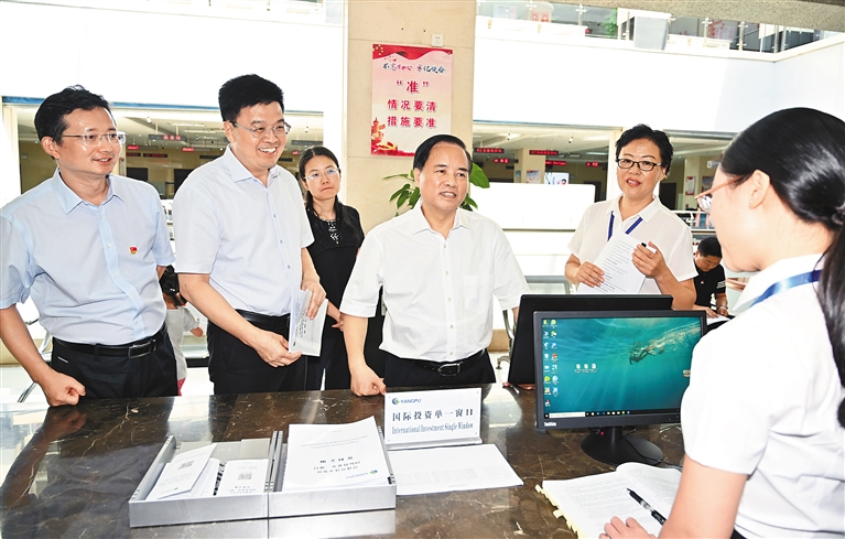 刘赐贵实地查看洋浦保税港区通关服务中心及围网监管区,走访洋浦政务服务中心各审批窗口,并现场考察了小铲滩集装箱码头、中石化(香港)公司洋浦油库等地,认真听取市场主体和窗口工作人员的意见建议,鼓励洋浦对标国际最高水平开放政策,加大海关监管、政务服务等制度创新力度,营造国际一流的营商环境。