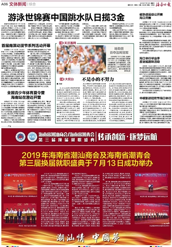 海南日报 文体新闻综合 006 2019-07-141 2019年07月14日 星期日