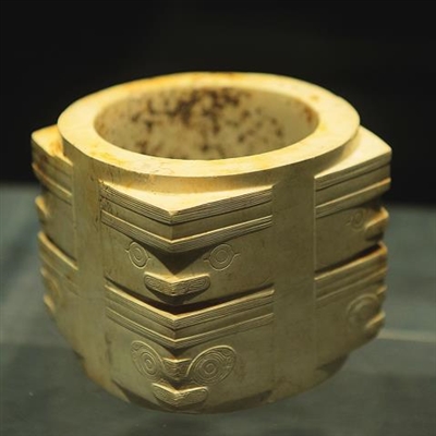 “国之大事,在祀与戎”,在以祭祀和战争为重的古代社会,祭祀是人与神灵沟通的重要方式,其间的媒介便是玉器。中国古代有“天圆地方”的观念,《周礼·大宗伯》中有“以苍璧礼天,以黄琮礼地”的记载,玉璧为圆形,玉琮多是内圆外方,良渚玉器明显已经形成了以璧、琮等为核心的玉礼器系统。从寻常人佩戴的珠串饰品到体现王权、神权的玉璧、玉琮和玉钺,玉器承载了良渚人的整个精神世界。