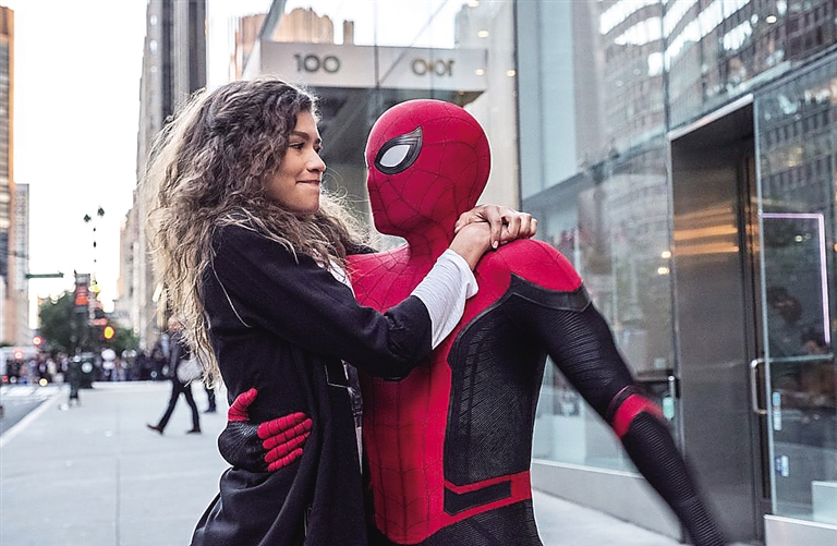 在《蜘蛛侠:英雄远征》里,蜘蛛侠的出场特别有趣。暑期旅行即将开始时,他和朋友商量如何才能追到同班高冷的女孩。像所有情窦初开的男孩一样,蜘蛛侠紧张又兴奋地期待着自己和女孩的约会。在经历了《复仇者联盟4》那场巨大创伤后,他把难过和伤痛都留在心里。我们见到的还是那个多动、碎嘴、时常有些自卑和自我怀疑的大男孩。有时候,蜘蛛侠会独自爬上屋顶,想起钢铁侠托尼·斯塔克,以及他对自己的期许。