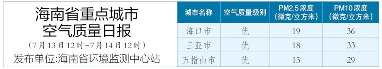 海南省重点城市空气质量日报