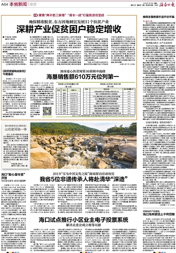 海南日报 本省新闻综合 004 2019-07-151 2019年07月15日 星期一