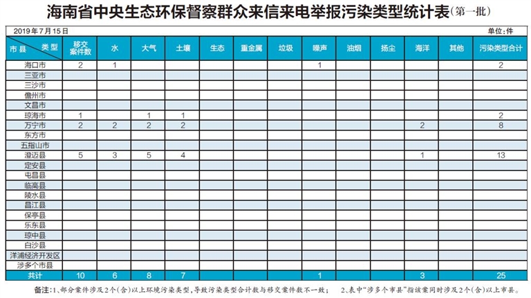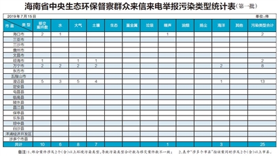 海南省中央生态环保督察群众来信来电举报污染类型统计表(第一批)