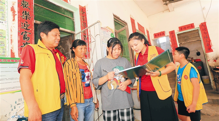 7月13日,在东方市板桥镇,中国狮子联会海南代表处未来之星服务队10余名志愿者在当地政府乡村振兴工作队的带领下,深入贫困农村,对贫困学生进行家访,并送上慰问品和助学金。同时,志愿者们深入了解贫困学生的家庭情况,以便开展下一步的捐助工作。本报记者 陈元才 见习记者 李天平 摄