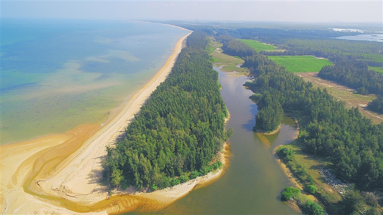 在昌江黎族自治县海尾镇,繁茂的海防林守护着海滩。近年来,为保护海岸生态,昌江着手恢复海防林,建立长效保护机制,成效显著。本报记者 陈元才 摄
