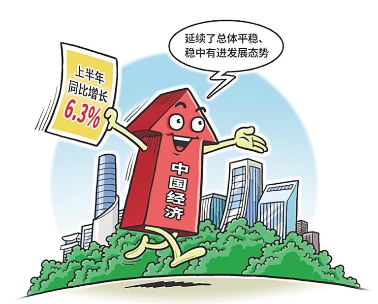 国家统计局新闻发言人毛盛勇说,总的来看,上半年国民经济运行在合理区间,延续了总体平稳、稳中有进发展态势。6.3%的增长速度在全球主要经济体里还是名列前茅的。下半年外部环境可能依然比较复杂,但经济平稳运行的基本面不会变,政策储备还有很多空间,国内市场不断壮大,这些都有利于实现全年经济社会发展的主要目标。