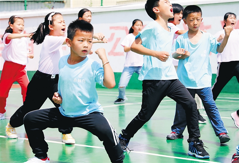 位于上海嘉定区南翔镇的南翔工业开发区,有许多来自外地的工人。暑假期间,许多小朋友从老家赶来开发区跟爸爸妈妈团聚。这些“小候鸟”的爸爸妈妈白天要上班,无暇照顾孩子,上海南翔工业开发区实业有限公司职工亲子工作室从7月初到8月下旬,在工作日为“小候鸟”们安排了丰富多彩的活动,包括做手工、学画画、练武术等,让“小候鸟”们度过一个文武双全的暑假生活。 新华社记者 方喆 摄