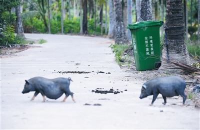 眼看一辆农用三轮车即将驶来 ,一头母猪领着三四头小猪仔紧张地“抢”过道路。这是7月16日傍晚,海南日报记者在陵水黎族自治县隆广镇新光村走信村民小组看到的一幕。