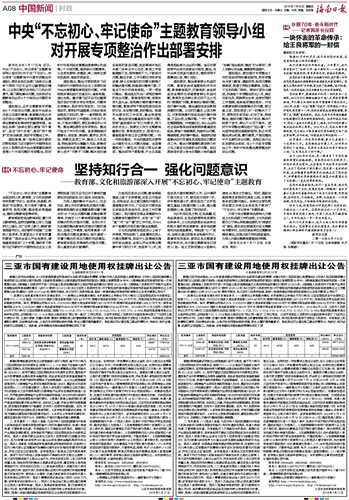 中央“不忘初心、牢记使命”主题教育领导小组对开展专项整治作出部署安排