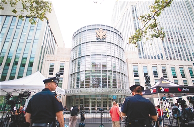 7月17日,在美国纽约,媒体记者聚集在法院外。 新华社/法新